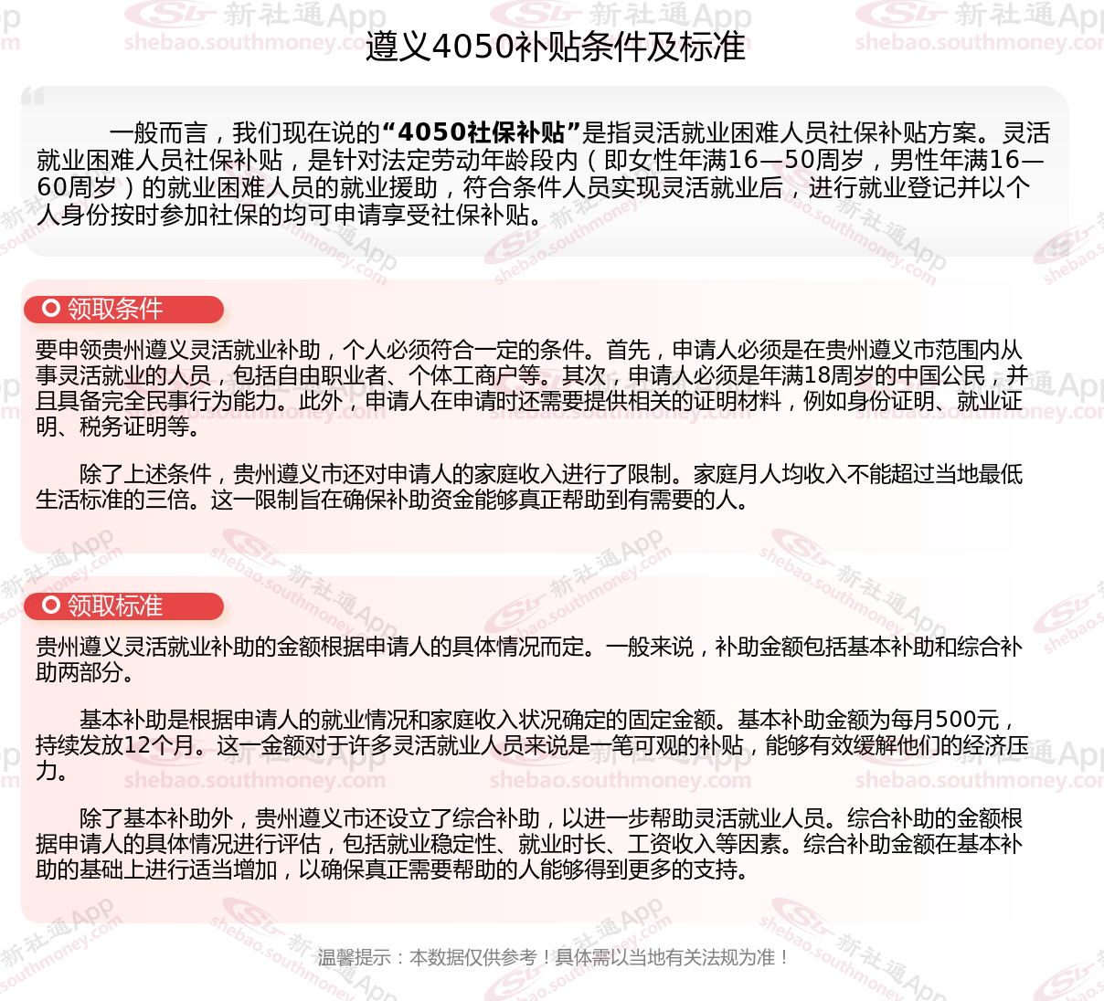 一、2025年遵义灵活就业4050社保补贴标准是多少?申请条件是什么?