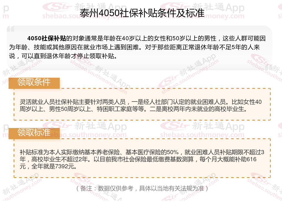 二、泰州4050社保补贴标准及条件(2025年最新)