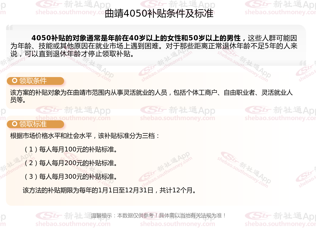 二、2025年曲靖4050社保补贴标准是多少,最新4050社保补贴领取条件来了