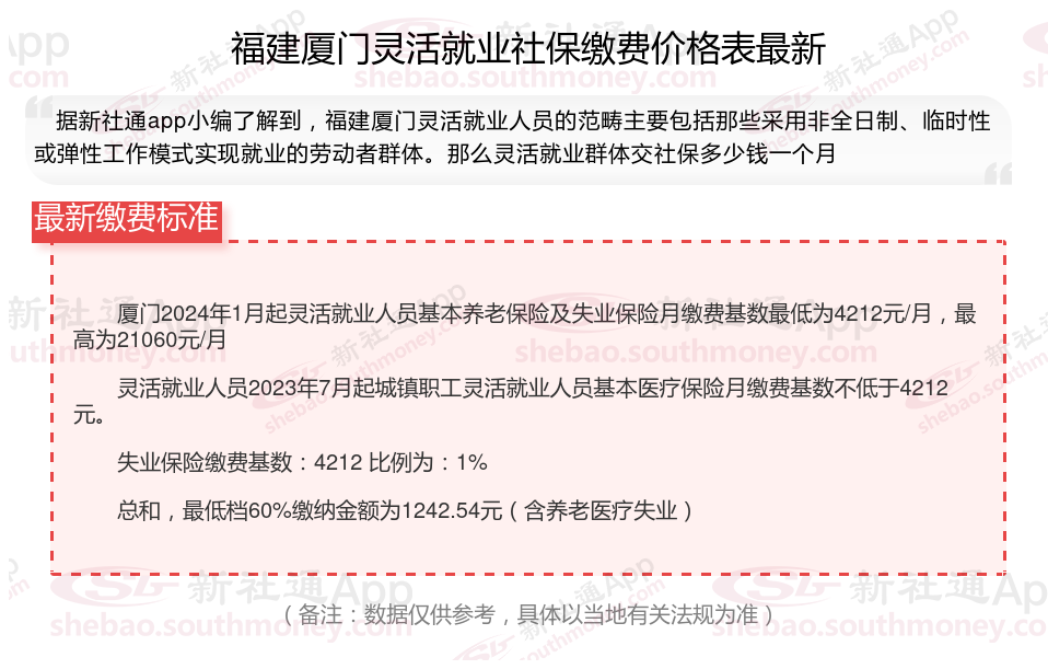 一、2025年福建厦门灵活就业社保缴费标准表 福建厦门灵活就业社保多少钱一个月?