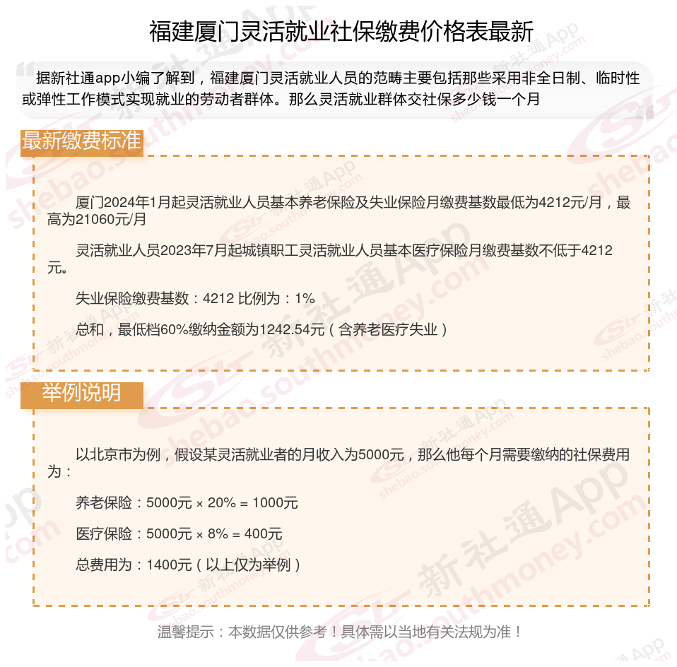 一、2025年福建厦门灵活就业社保缴费标准公布啦 福建厦门灵活就业社保多少钱一个月?