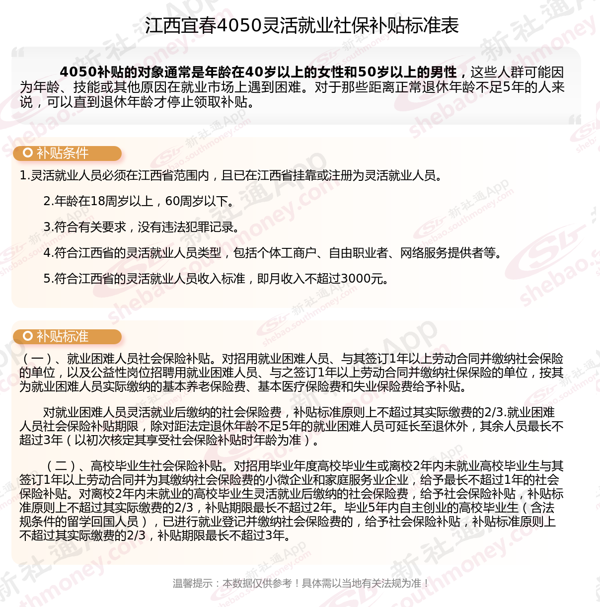二、江西宜春4050社保补贴标准及条件2025年,最新如下