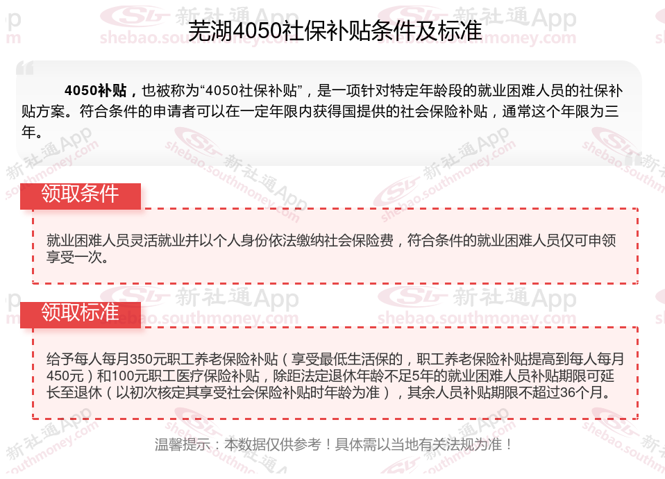 2025芜湖4050补贴主要针对的是年龄在40岁以上的女性和50岁以上的男性,这些人群通常因为年龄较大而面临就业困难。