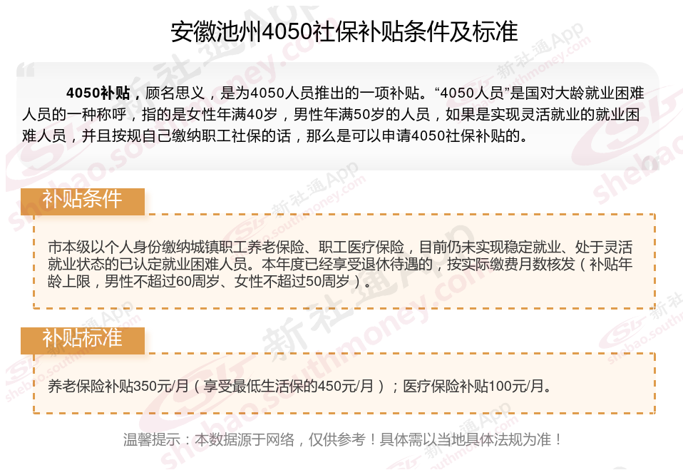 二、2025年安徽池州4050社保补贴标准是多少?领取条件是什么?