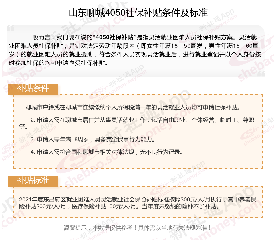 二、山东聊城4050社保补贴新规2025年最新标准,2025年山东聊城4050社保补贴条件是什么?