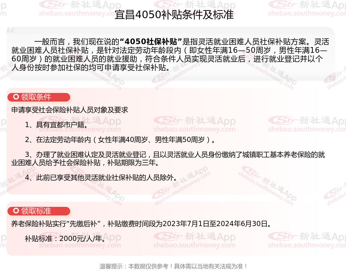 一、宜昌4050社保补贴标准及条件2025年最新消息
