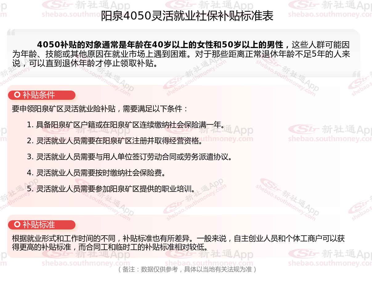 一、2025年阳泉灵活就业4050社保补贴标准及条件是什么(灵活就业4050社保补贴多少钱)
