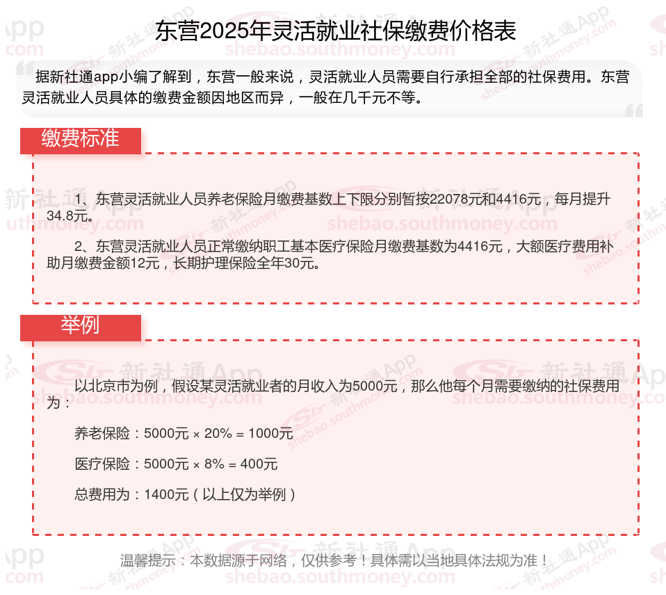 据新社通app数据显示,2024-2025年东营灵活就业人员养老保险的缴费标准:
