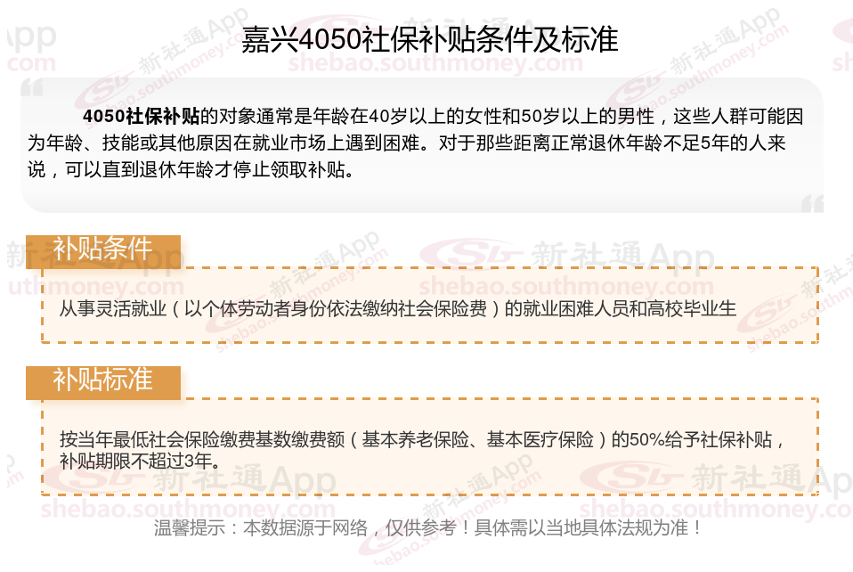 2025嘉兴4050补贴主要针对的是年龄在40岁以上的女性和50岁以上的男性,这些人群通常因为年龄较大而面临就业困难。
