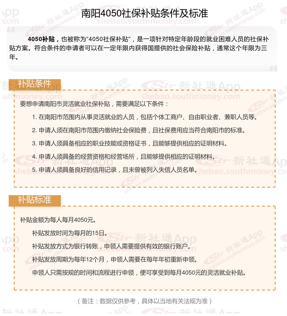 二、2025年南阳灵活就业4050社保补贴标准及条件是什么?来了解一下