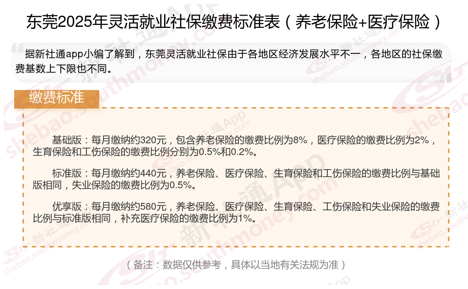 随着经济的发展和社会的进步,灵活就业人员越来越多,但是很多人不知道如何缴纳社保。本文将介绍2025年东莞灵活就业人员社保缴费基数及如何缴纳社保,能领取多少钱,帮助大家更好地了解灵活就业社保,随着新社通APP小编一起了解最新资讯吧。