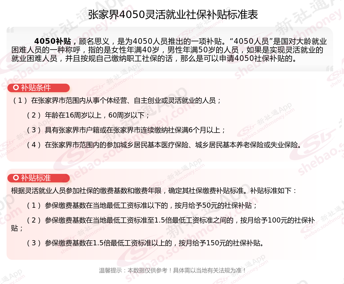 二、张家界4050社保补贴标准及条件4050社保补贴,最新如下