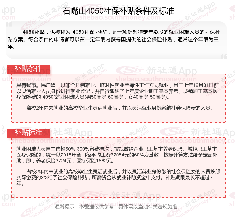 二、2025年石嘴山4050社保补贴标准及条件