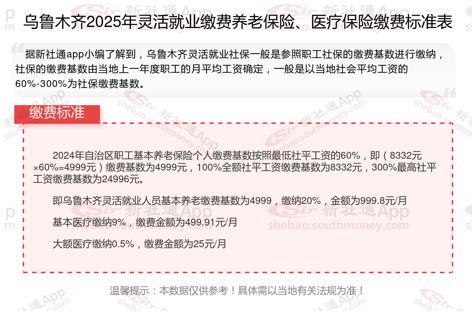一、乌鲁木齐灵活就业人员社会保险缴费档次表,2025年最新个人社保养老保险缴费标准一览