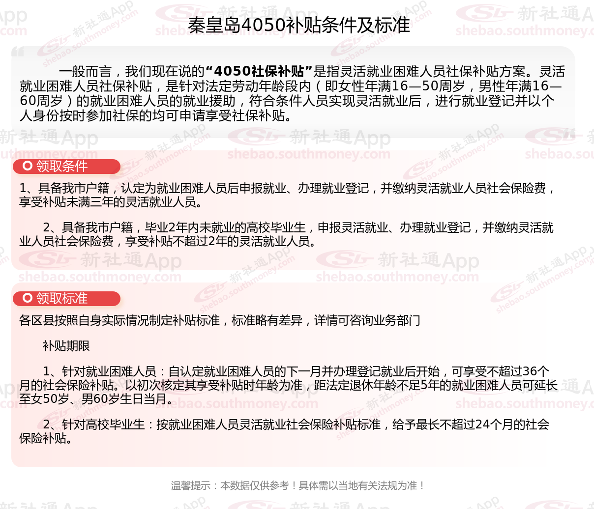 一、秦皇岛4050社保补贴标准及条件2025年最新消息