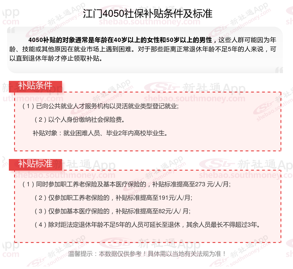 二、2025年江门4050社保补贴标准是多少,最新4050社保补贴领取条件来了