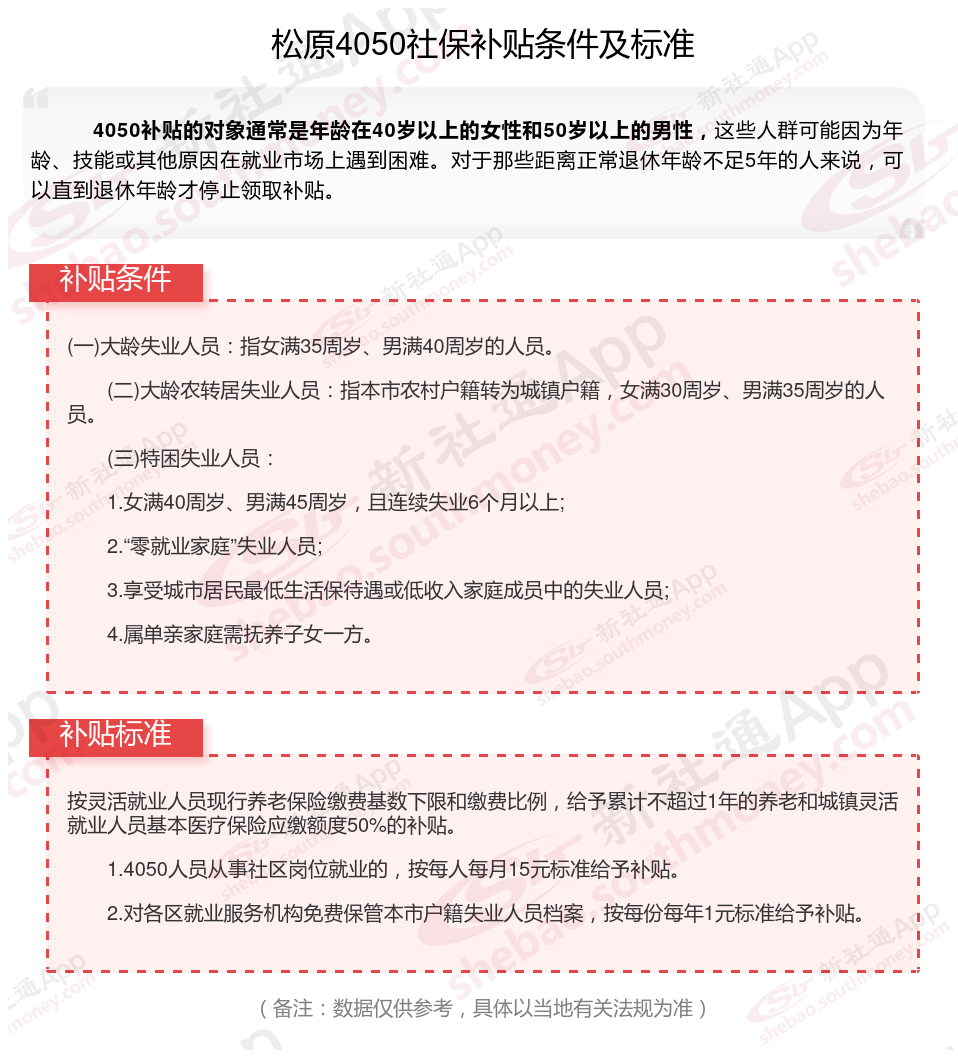 一、2025年松原灵活就业4050社保补贴标准是多少?申请条件是什么?