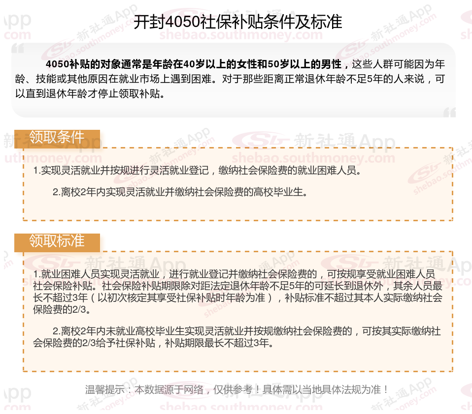 2025开封4050补贴主要针对的是年龄在40岁以上的女性和50岁以上的男性,这些人群通常因为年龄较大而面临就业困难。