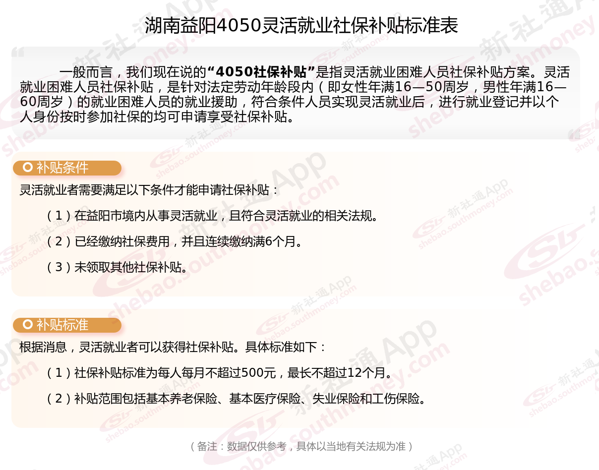 二、湖南益阳4050社保补贴标准及条件4050社保补贴,最新如下