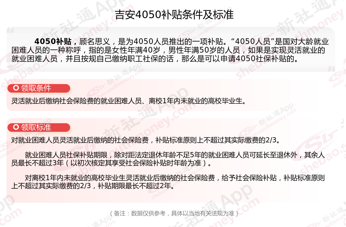 二、吉安灵活就业4050社保补贴标准2025年(4050社保条件是什么)
