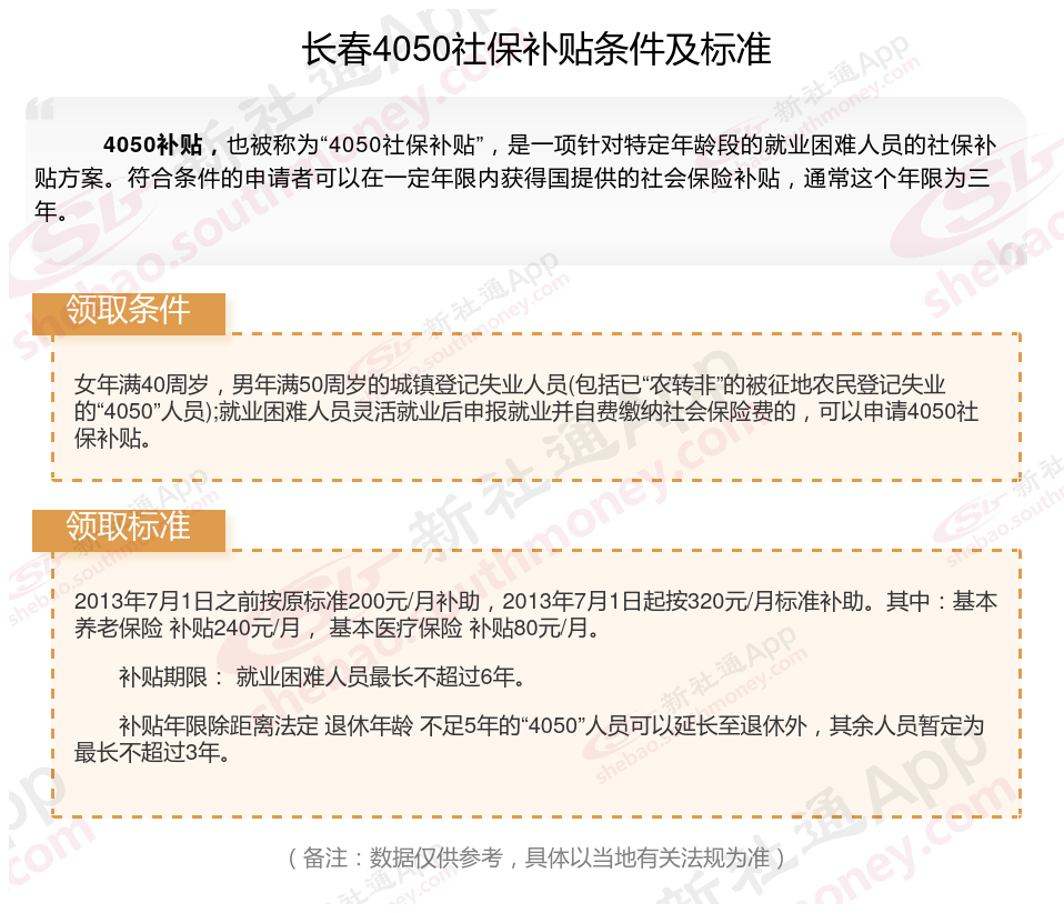 长春4050灵活就业社保补贴是什么?今天聊一下4050补贴话题。44050社保补贴标准据新社通app小编了解,通常,4050社保补贴包含基本医疗保险和基本养老保险两个险种,社保补贴金额为申请人实际缴纳基本养老保险和基本医疗保险金额的2/3,具体标准以当地社保局公布的数据为准!那么长春4050灵活就业社保补贴标准是多少钱?长春4050社保补贴可以领取多少?接下来随新社通APP小编了解一下长春4050灵活就业社保补贴的最新资讯。