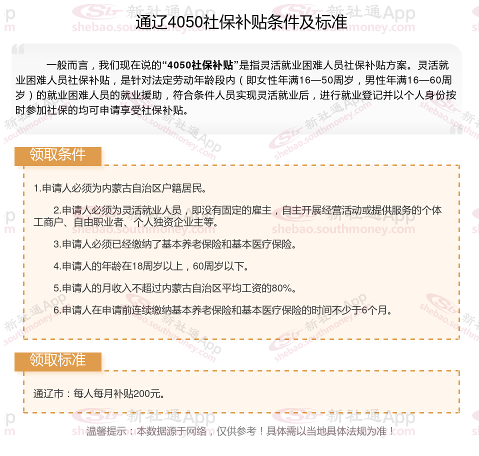 二、2025年通辽4050社保补贴标准,最新领取条件来了