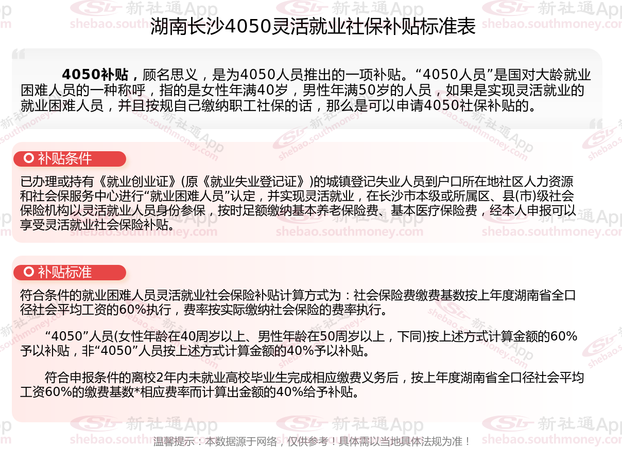 2025湖南长沙灵活就业4050社保补贴是一项面向特定年龄段的就业困难人群的社会保险补贴。