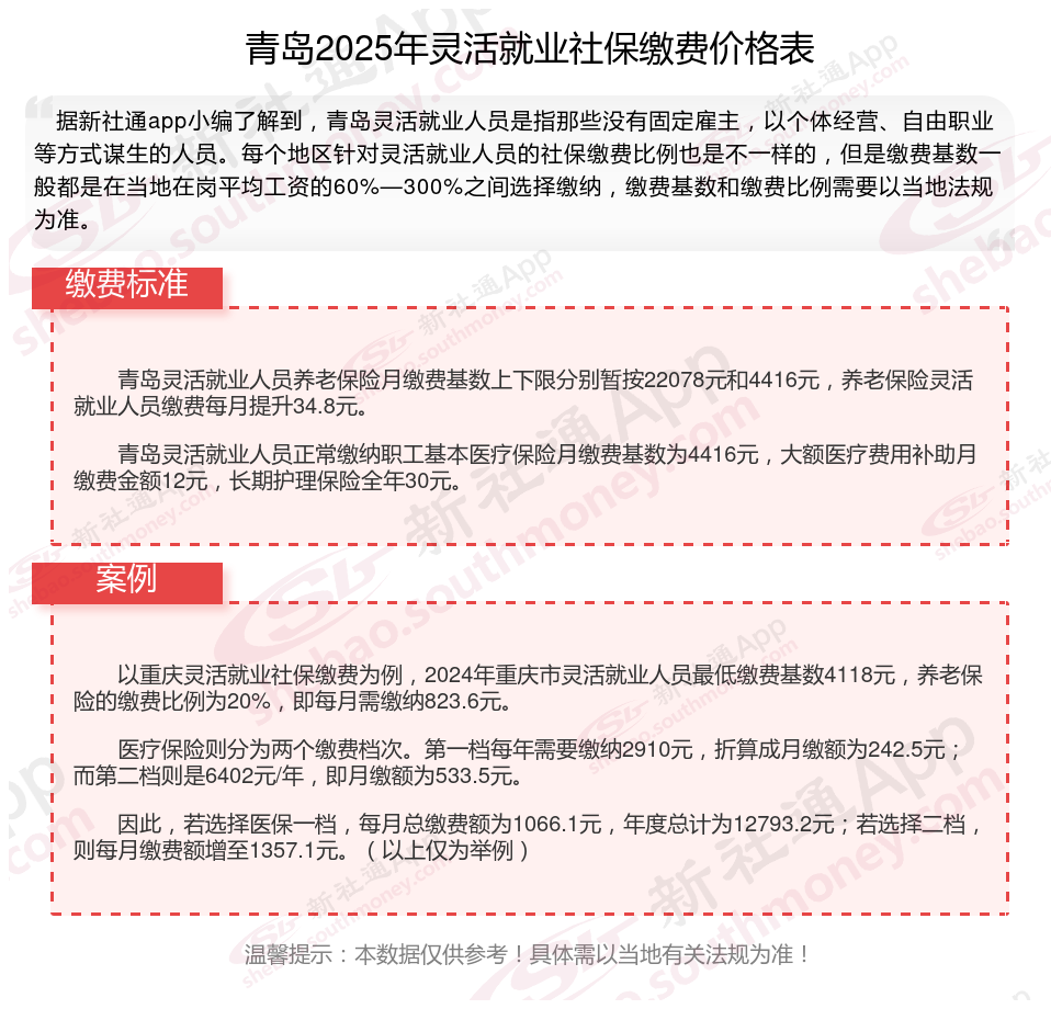 一、2025年青岛灵活就业社保缴费标准表 青岛灵活就业社保多少钱一个月?