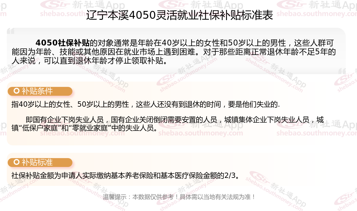 三、辽宁本溪灵活就业4050社保补贴标准及条件是什么