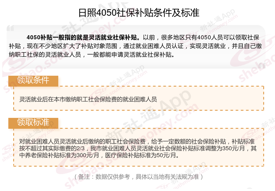 2025日照灵活就业4050社保补贴是一项面向特定年龄段的就业困难人群的社会保险补贴。