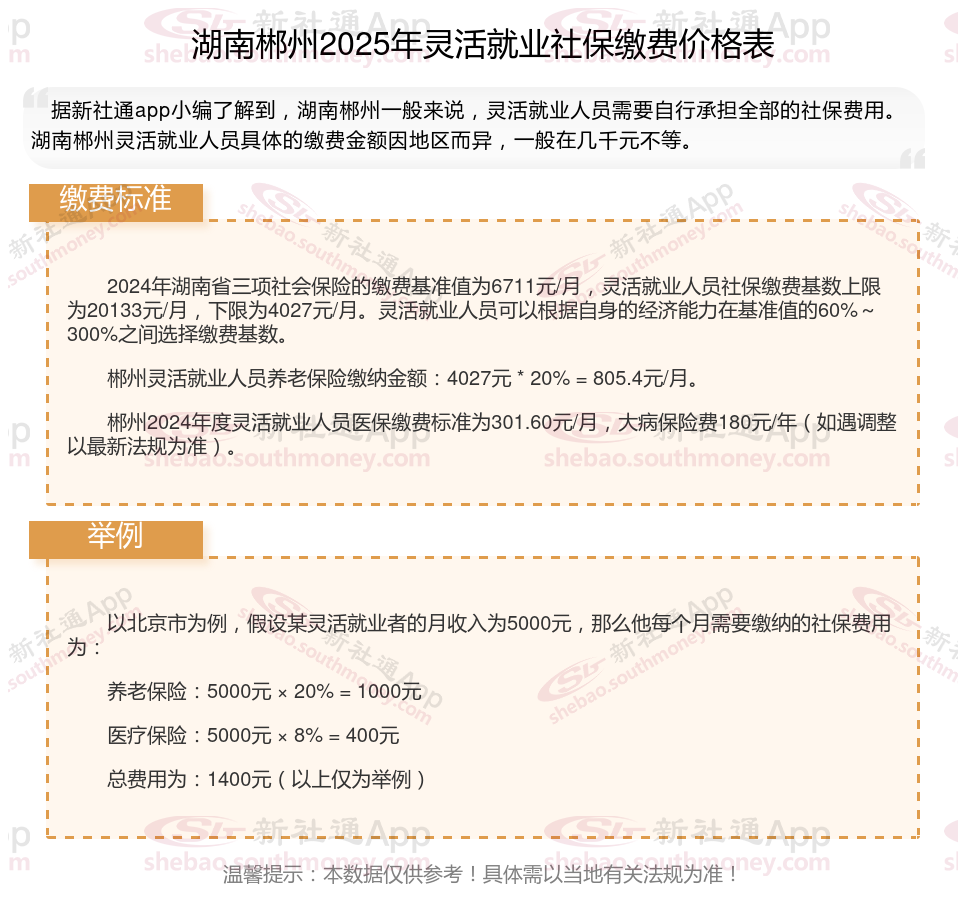 据新社通app数据显示,湖南郴州企业灵活就业养老保险的缴费基数为:4027元。