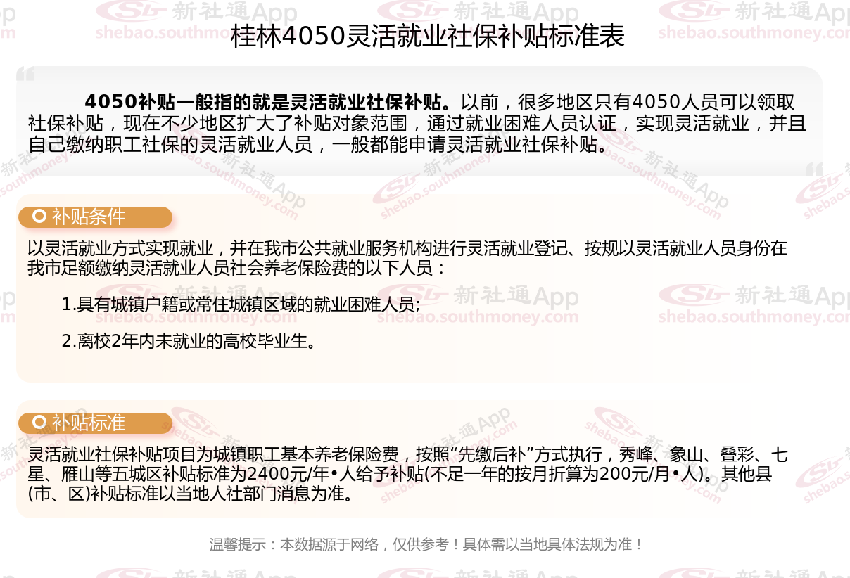 一、2023-2024年桂林4050社保补贴标准及条件,最新如下