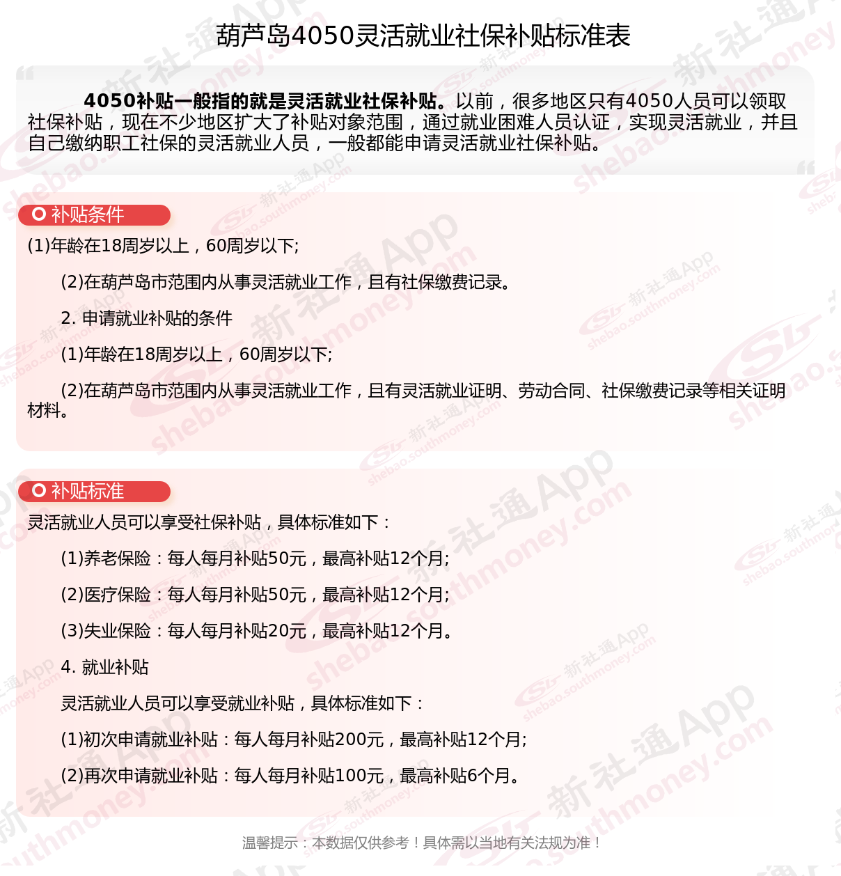三、葫芦岛灵活就业4050社保补贴标准及条件是什么