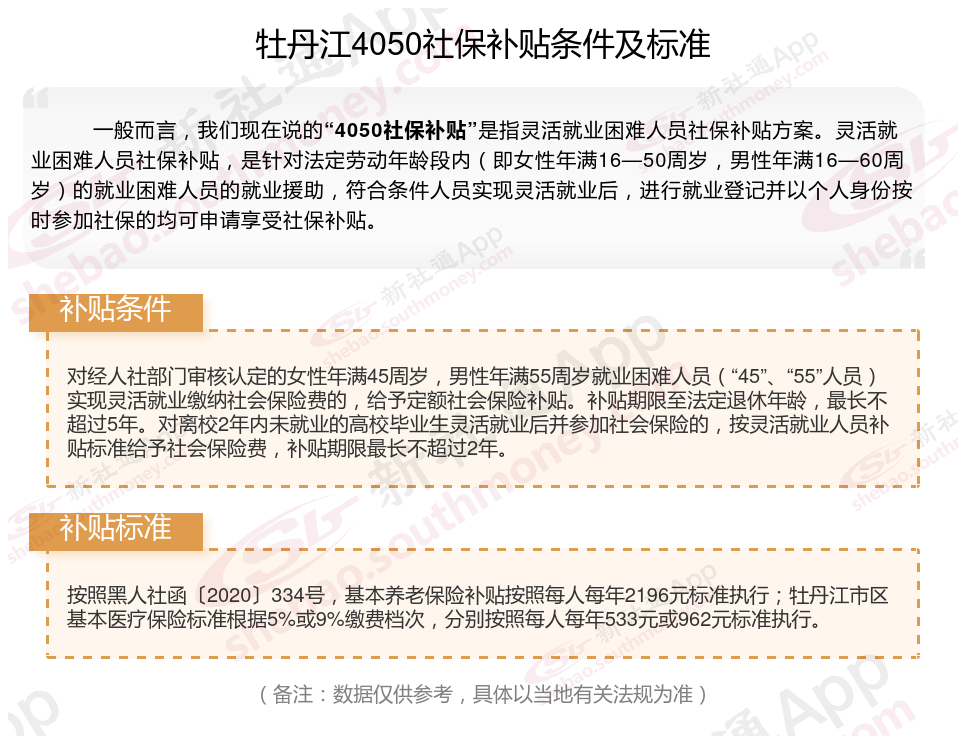 一、2025年牡丹江4050社保补贴标准及条件来了
