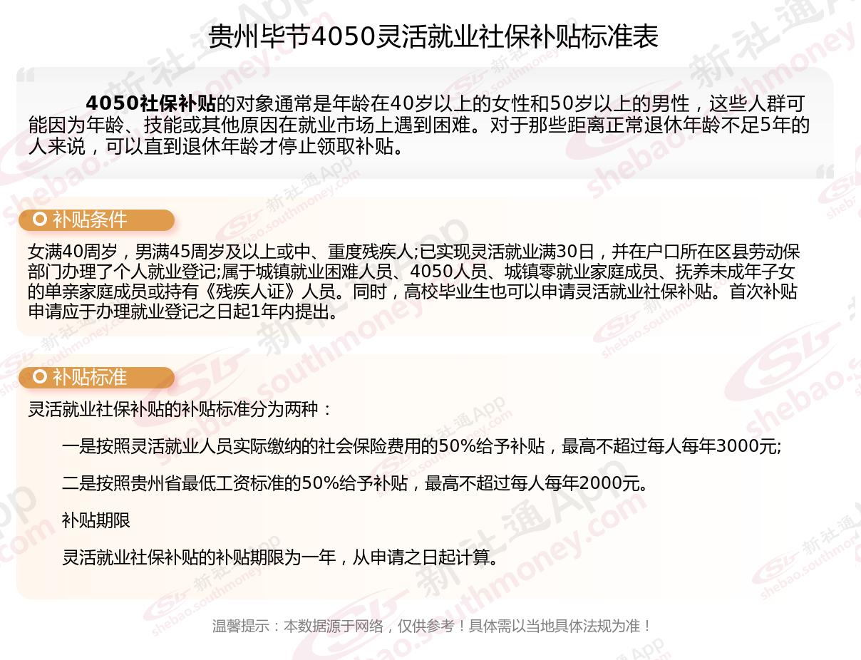 一、贵州毕节灵活就业4050社保补贴标准和条件是什么?