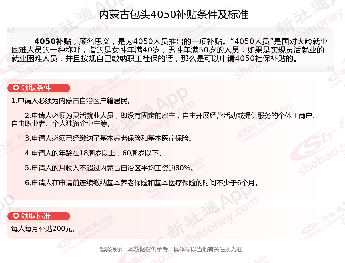 二、内蒙古包头4050社保补贴标准及条件2025年,最新如下