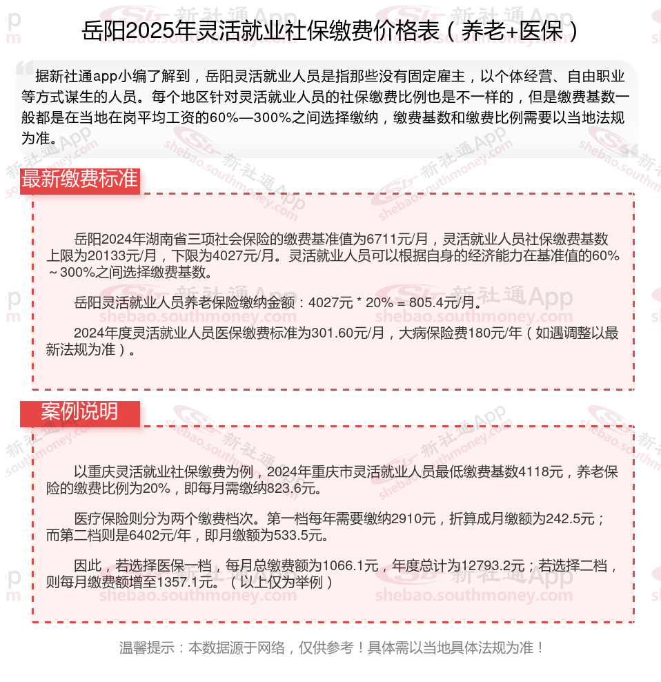 一、2025年岳阳灵活就业社保缴费标准表 岳阳灵活就业社保多少钱一个月?