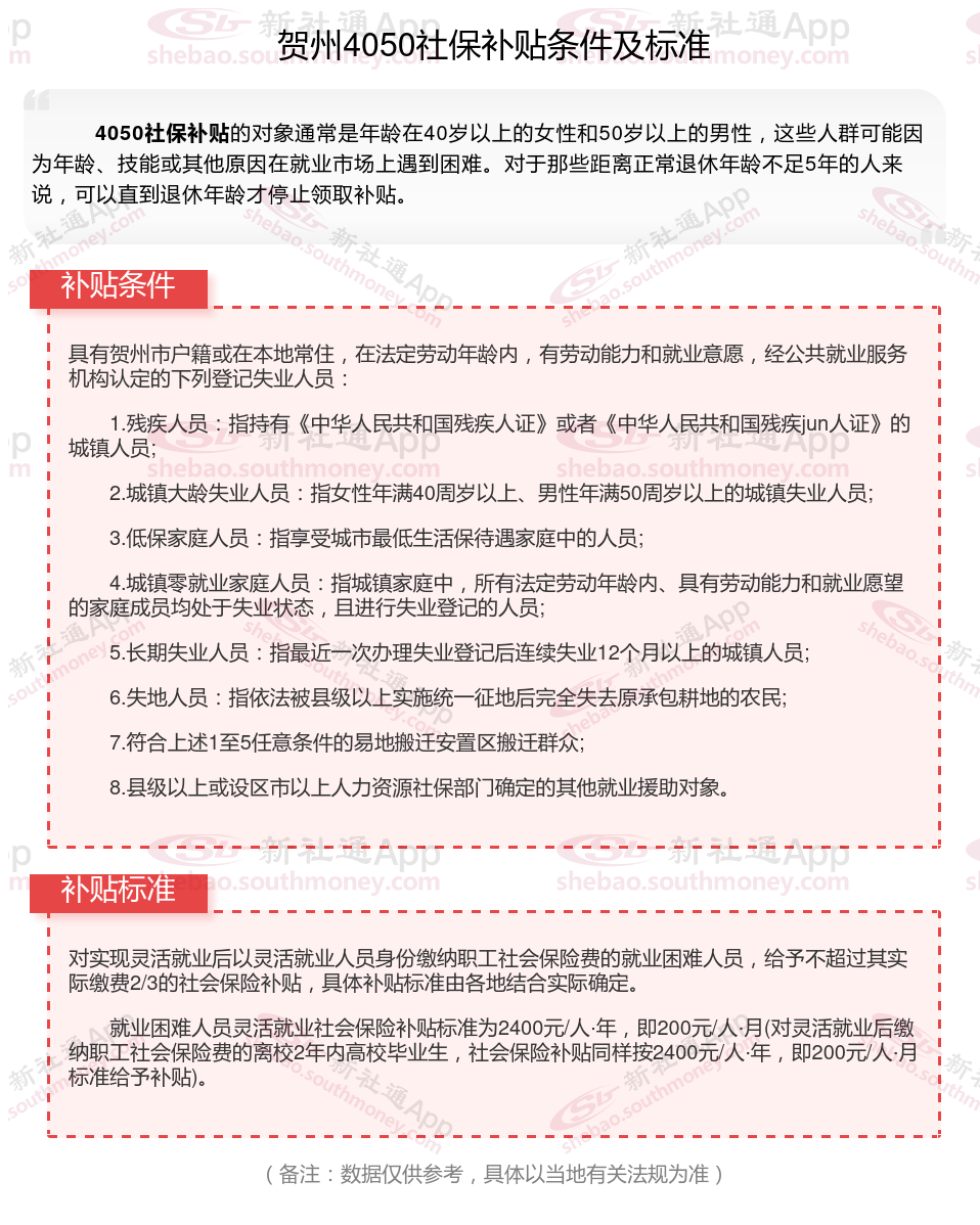 一、贺州4050社保补贴标准及条件2025年最新消息
