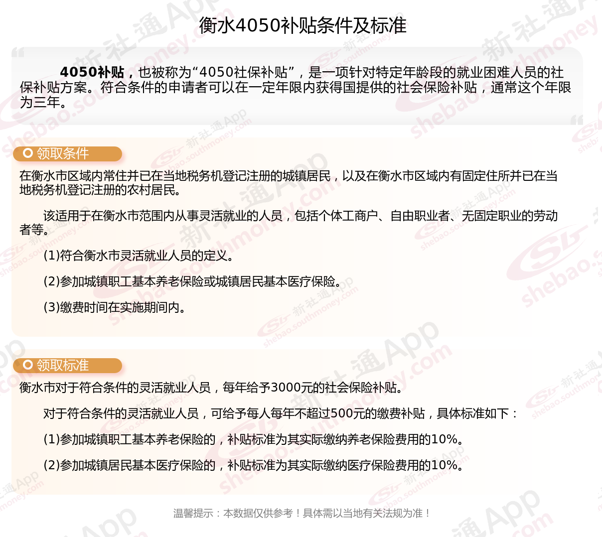 二、衡水4050社保补贴标准及条件4050社保补贴,最新如下