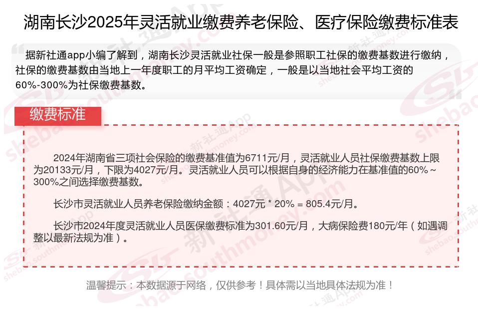 二、湖南长沙2025年灵活就业社保缴费基数及比例最新消息