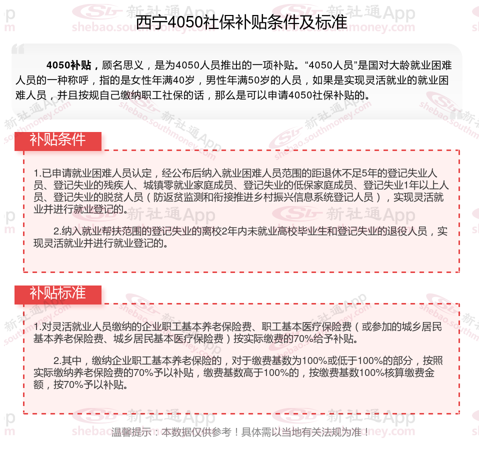 二、2025年西宁4050社保补贴标准及条件(4050社保补贴多少钱?)