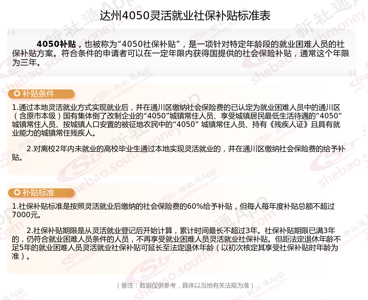 二、2025年达州灵活就业4050社保补贴标准及条件是什么?来了解一下