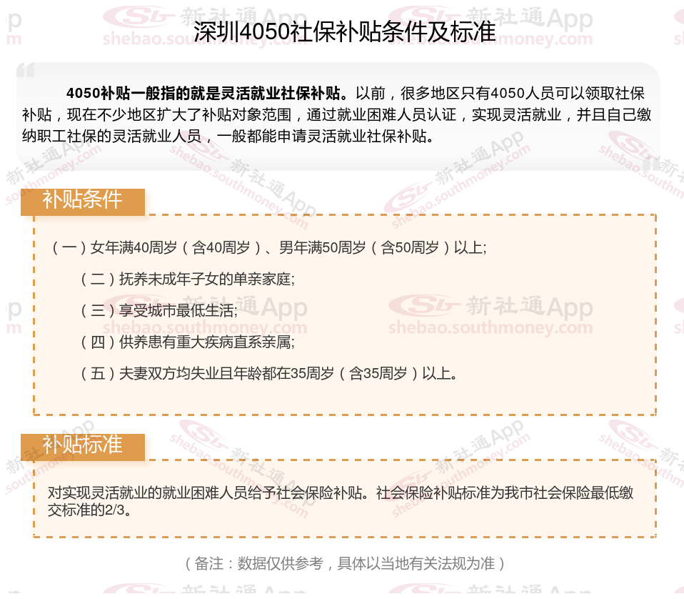 二、深圳4050社保补贴标准及条件2025年,最新如下