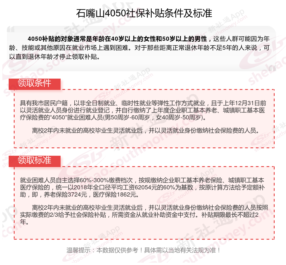 一、2025年石嘴山4050社保补贴标准及条件是多少?