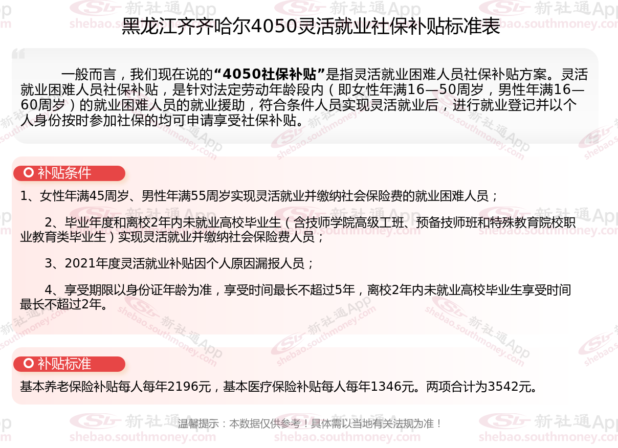 二、2025年黑龙江齐齐哈尔灵活就业4050社保补贴标准及条件是什么?来了解一下