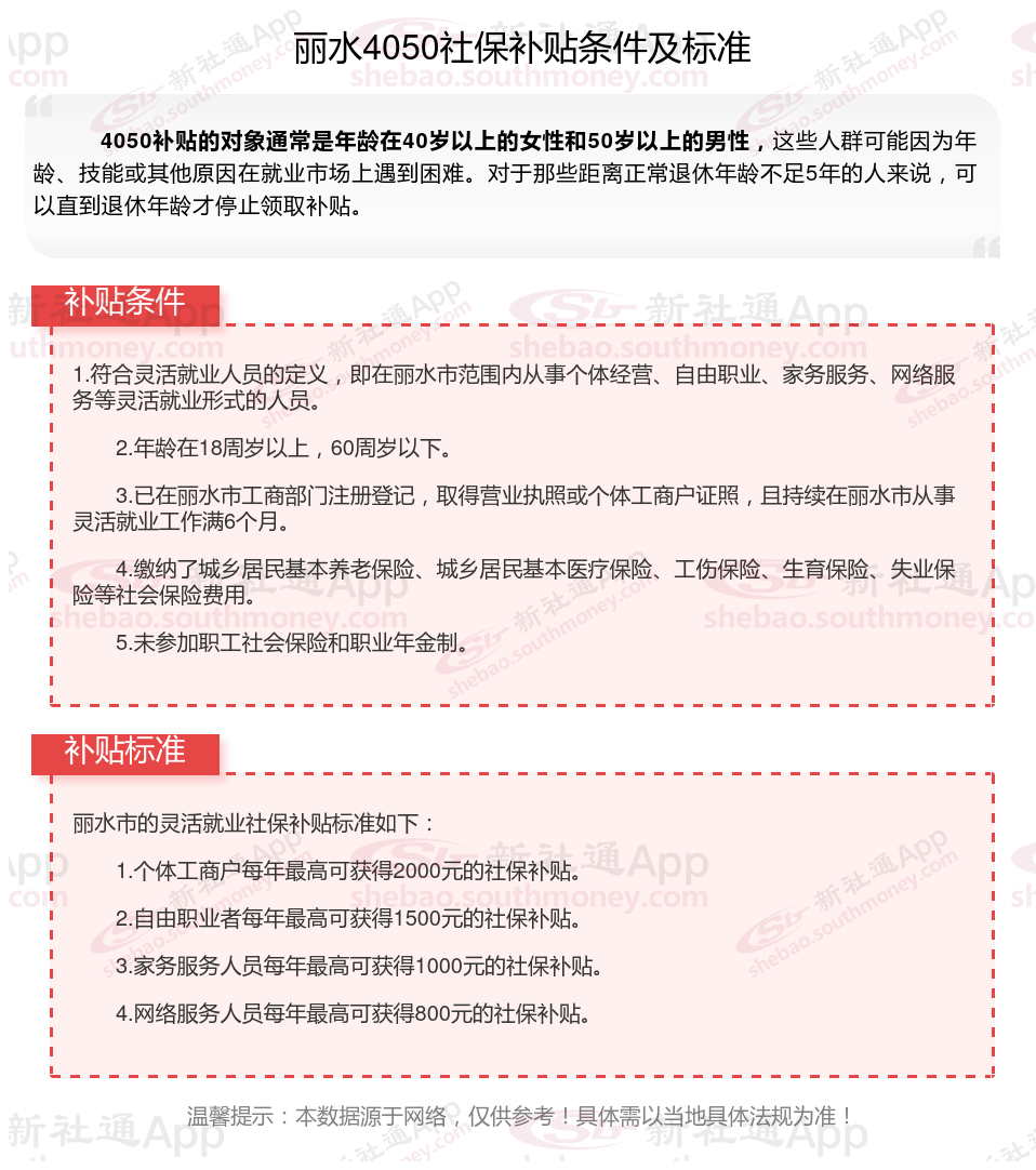 一、丽水4050社保补贴标准及条件2025年最新消息