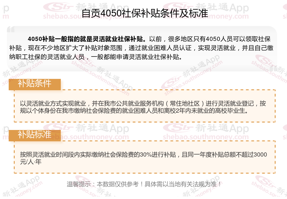 一、2025年自贡灵活就业4050社保补贴标准是多少?申请条件是什么?