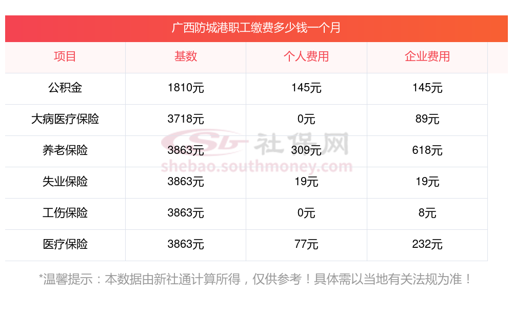 广西防城港2024职工社保一年要多少钱?2024广西防城港职工社保年缴费金额=社保月缴费基数*社保比例*12个月。需要提醒的,各地的社保缴费基数和比例是不一样的,因此,社保每年要交多少钱也是因地而异的。