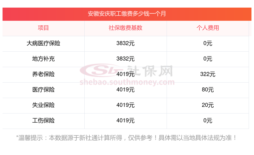 一、安徽安庆职工社保缴费基数是多少钱一个月?职工社保缴纳标准