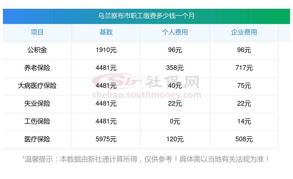 一、乌兰察布市职工社保缴费基数是多少钱一个月?职工社保缴纳标准是多少?